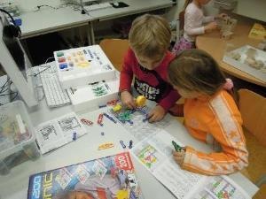 Denkschule ist freiwillig und die Kinder bestimmen ihren Lerninhalt selbst. Beim freien Tüfteln und Forschen lernen sie das Angebot der Denkschule kennen und probieren einzelne Spiele und Baukästen aus. Sie dürfen beispielsweise Geheimschriften und Codes entwickeln,